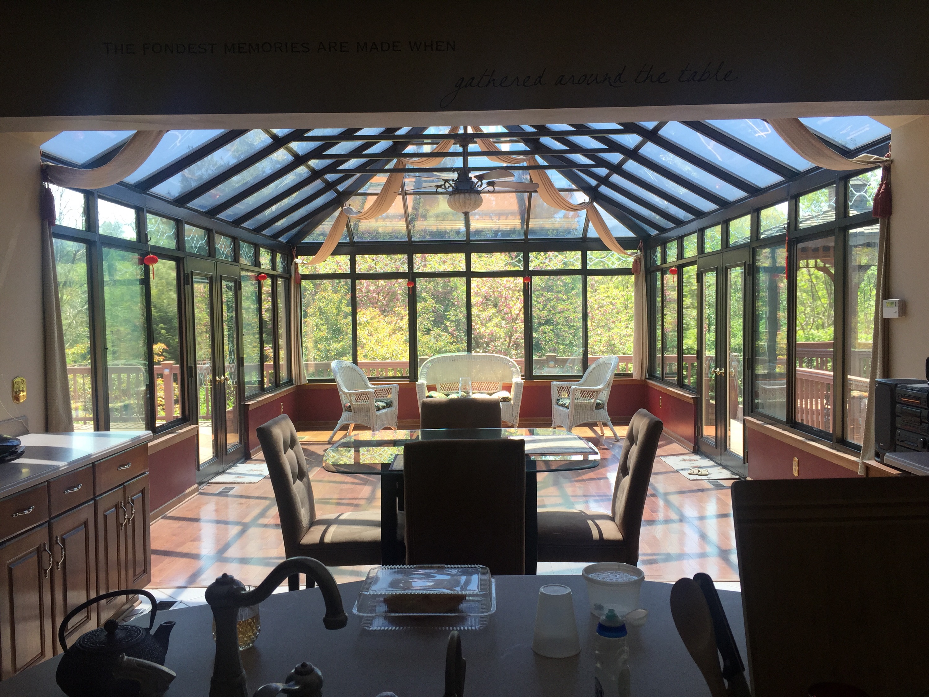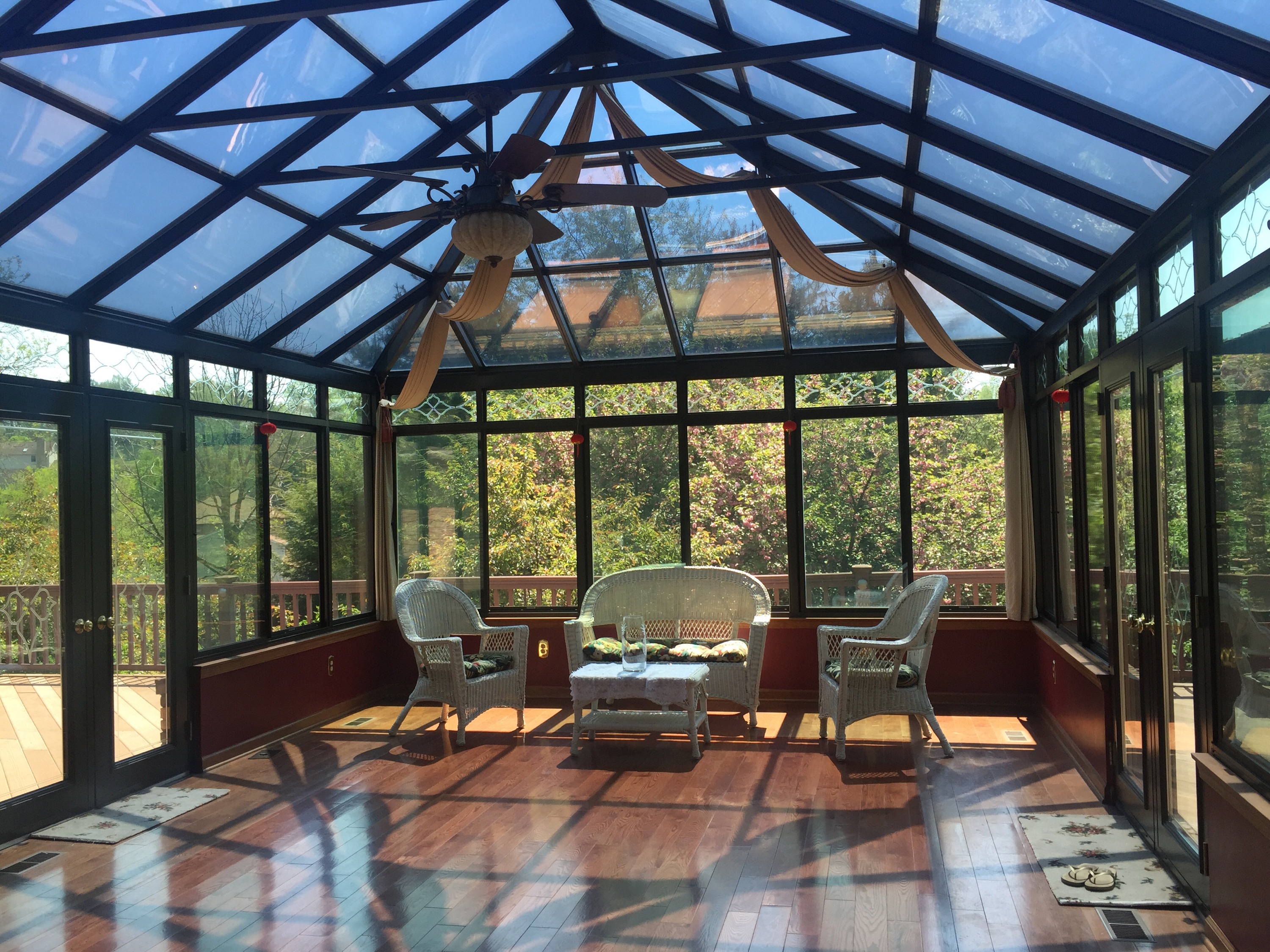 Their beautiful home–living room, solarium, gazebos, and a few furry neighbors: