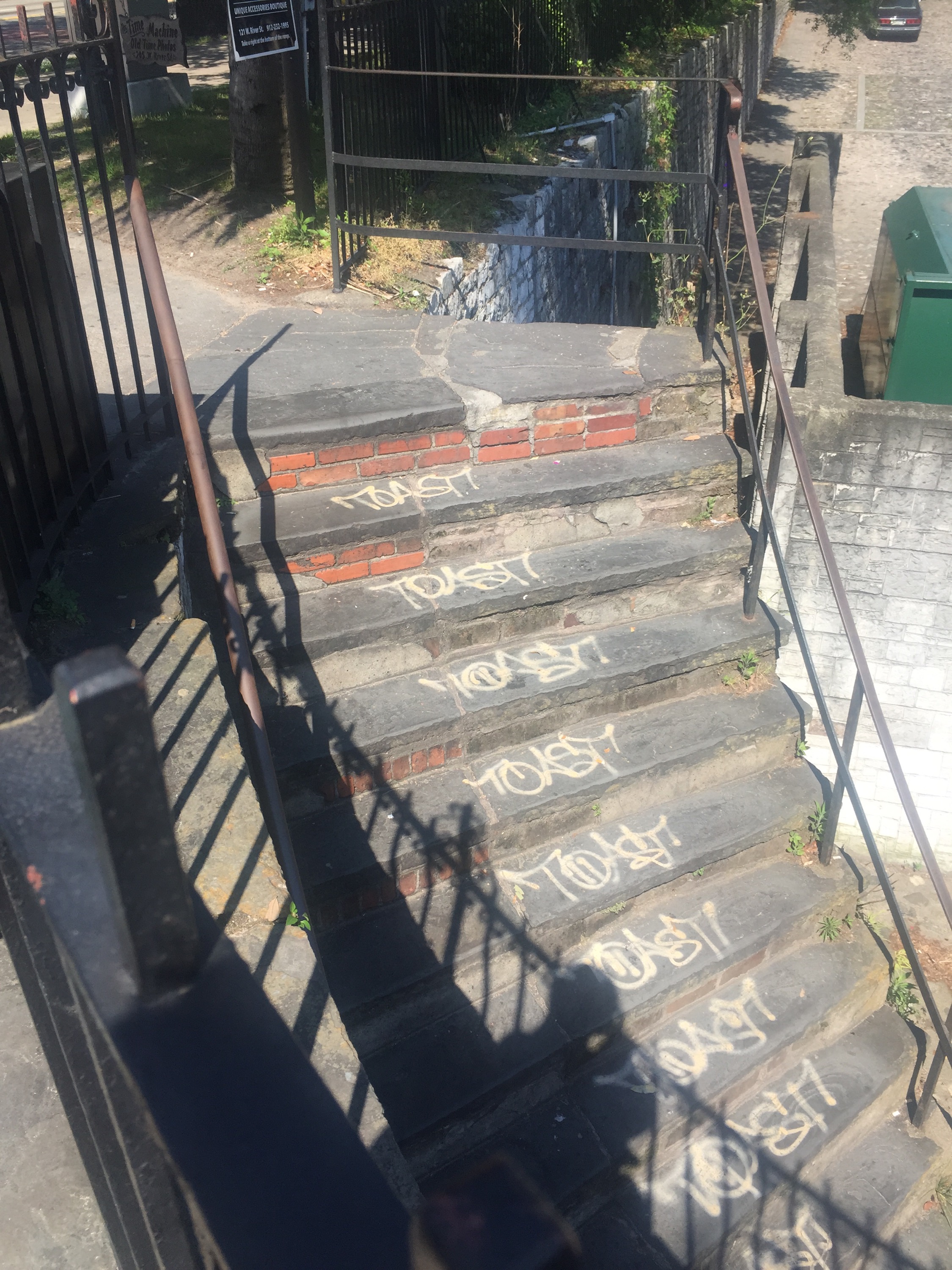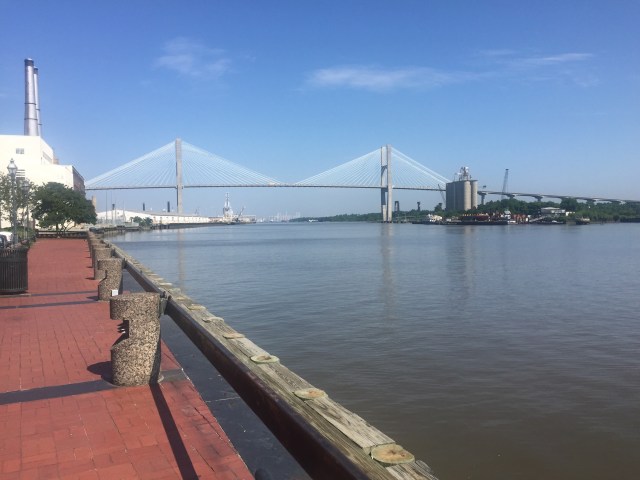 I wandered down Bay Street for a bit to check out the scenery–Savannah is breathtakingly beautiful. Eventually I made my way down a very steep set of steps to River Street and bought a pair of cateye sunglasses. It was deliciously hot and sunny!