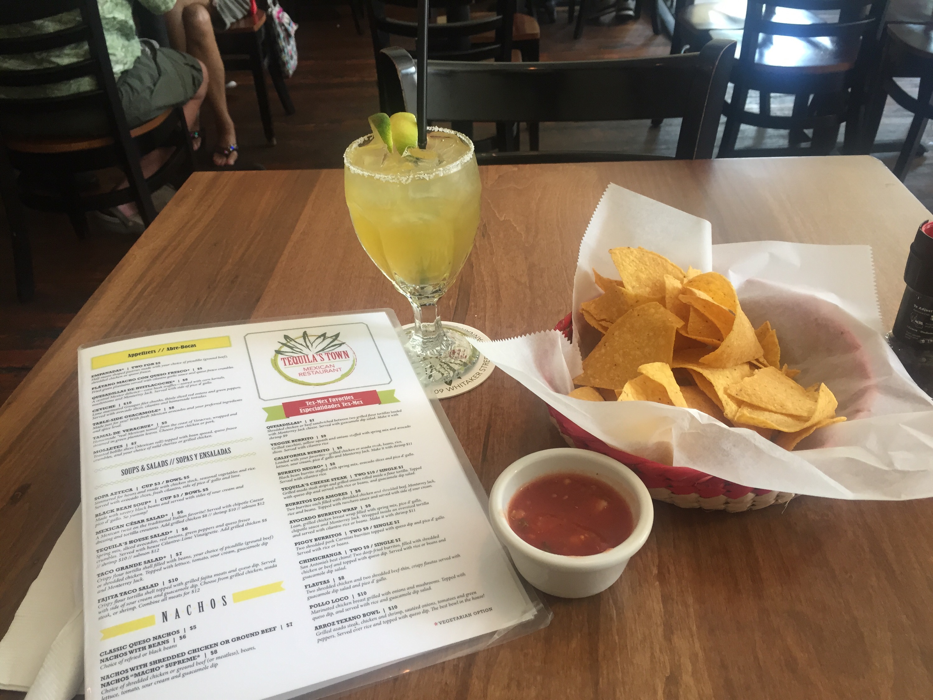 I then walked from River Street to a restaurant called Tequila’s Town (recommended by my friend Julia) for lunch. It was about a 15 minutes walk from River Street and I sweated like a whore in church the entire way there, but it was worth it–two-for-$4 margaritas! I ordered a chimichanga. Pretty sure the last time I ate a chimichanga was at Miguel’s Mexican Restaurant in Hodgenville in 2004–that experience was nothing compared to this one. The food was awesome! I even watched a man make fresh guacamole right at the table for the couple sitting next to me–pretty sweet. The waiter asked me if I wanted the second of my two-for-one margaritas to go. I giggled gleefully inside–you could drink on the street! How scandalous!
